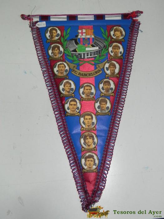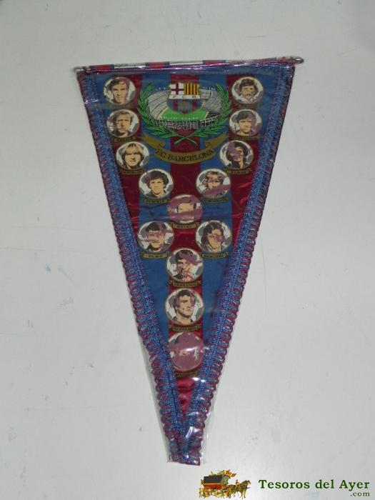 ANTIGUO BANDERIN, FUTBOL CLUB BARCELONA, JUGADORES, MIDE 48 CMS DE LARGO APROX.