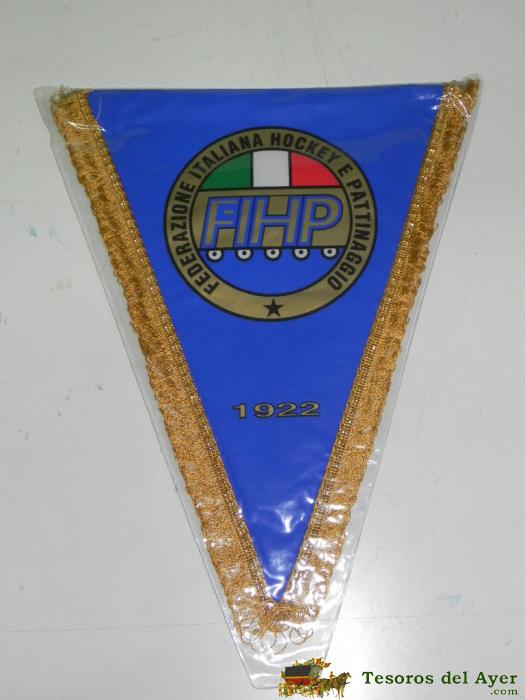 ANTIGUO BANDERIN, FEDERACION ITALIANA DE HOCKEY Y PATINAJE, MIDE 38 CMS DE LARGO APROX.