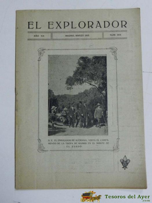 ANTIGUA REVISTA EL EXPLORADOR, BOYS SCOUTS, SCOUTING, SCOUTISME, ESCULTISMO ORGANO DE LA INSTITUCION NACIONAL DE LOS EXPLORADORES DE ESPAÑA - Nº 264. MARZO 1931., EN PORTADA EL EMBAJADOR DE ALEMANIA, VISITA EL CAMPAMENTO DE LA TROPA DE MADRID EN EL MONTE