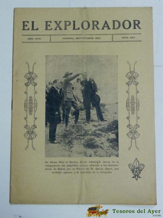 ANTIGUA REVISTA EL EXPLORADOR, BOYS SCOUTS, SCOUTING, SCOUTISME, ESCULTISMO ORGANO DE LA INSTITUCION NACIONAL DE LOS EXPLORADORES DE ESPAÑA - Nº 258. SEPTIEMBRE DE 1930., EN PORTADA EL INFANTE DON JAIME, TIENE 16 PAGINAS Y MIDE 27 X 19 CMS.