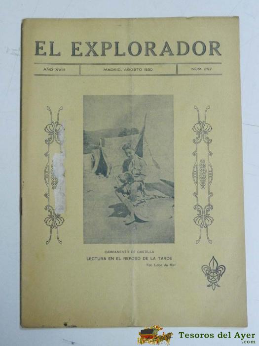 ANTIGUA REVISTA EL EXPLORADOR, BOYS SCOUTS, SCOUTING, SCOUTISME, ESCULTISMO ORGANO DE LA INSTITUCION NACIONAL DE LOS EXPLORADORES DE ESPAÑA - Nº 257. AGOSTO DE 1930., TIENE 16 PAGINAS Y MIDE 27 X 19 CMS.
