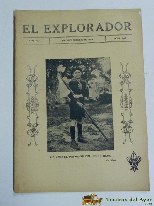 ANTIGUA REVISTA EL EXPLORADOR, BOYS SCOUTS, SCOUTING, SCOUTISME, ESCULTISMO ORGANO DE LA INSTITUCION NACIONAL DE LOS EXPLORADORES DE ESPAÑA - Nº 249. DICIEMBRE DE 1929., TIENE 16 PAGINAS Y MIDE 27 X 19 CMS.