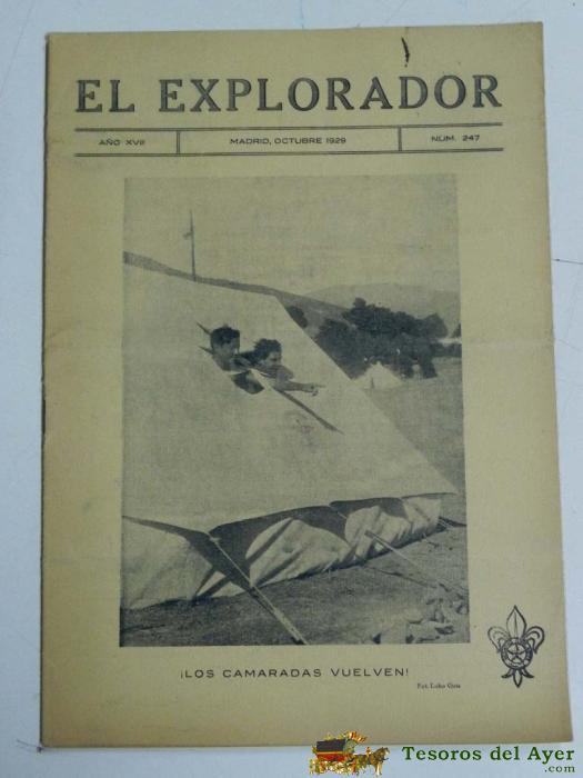 ANTIGUA REVISTA EL EXPLORADOR, BOYS SCOUTS, SCOUTING, SCOUTISME, ESCULTISMO ORGANO DE LA INSTITUCION NACIONAL DE LOS EXPLORADORES DE ESPAÑA - Nº 247. OCTUBRE DE 1929., TIENE 16 PAGINAS Y MIDE 27 X 19 CMS.
