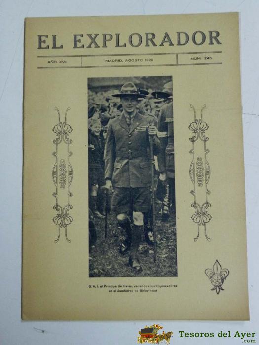 ANTIGUA REVISTA EL EXPLORADOR, BOYS SCOUTS, SCOUTING, SCOUTISME, ESCULTISMO ORGANO DE LA INSTITUCION NACIONAL DE LOS EXPLORADORES DE ESPAÑA - Nº 245. AGOSTO DE 1929., EN PORTADA EL PRINCIPE DE GALES, TIENE 16 PAGINAS Y MIDE 27 X 19 CMS.