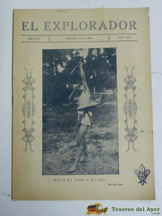 ANTIGUA REVISTA EL EXPLORADOR, BOYS SCOUTS, SCOUTING, SCOUTISME, ESCULTISMO ORGANO DE LA INSTITUCION NACIONAL DE LOS EXPLORADORES DE ESPAÑA - Nº 244. JULIO DE 1929., TIENE 16 PAGINAS Y MIDE 27 X 19 CMS.