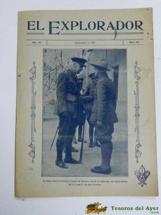 ANTIGUA REVISTA EL EXPLORADOR, BOYS SCOUTS, SCOUTING, SCOUTISME, ESCULTISMO ORGANO DE LA INSTITUCION NACIONAL DE LOS EXPLORADORES DE ESPAÑA - Nº 224. NOVIEMBRE DE 1927., EN PORTADA SU ALTEZA EL INFANTE D. CARLOS DE BORBON, SALUDO AL INSTRUCTOR DE EXPLORAD