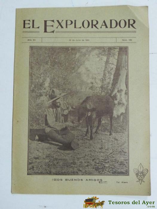 ANTIGUA REVISTA EL EXPLORADOR, BOYS SCOUTS, SCOUTING, SCOUTISME, ESCULTISMO ORGANO DE LA INSTITUCION NACIONAL DE LOS EXPLORADORES DE ESPAÑA - Nº 184. JULIO DE 1924., TIENE 16 PAGINAS Y MIDE 27 X 19 CMS.