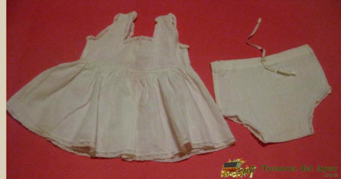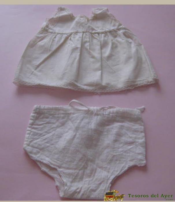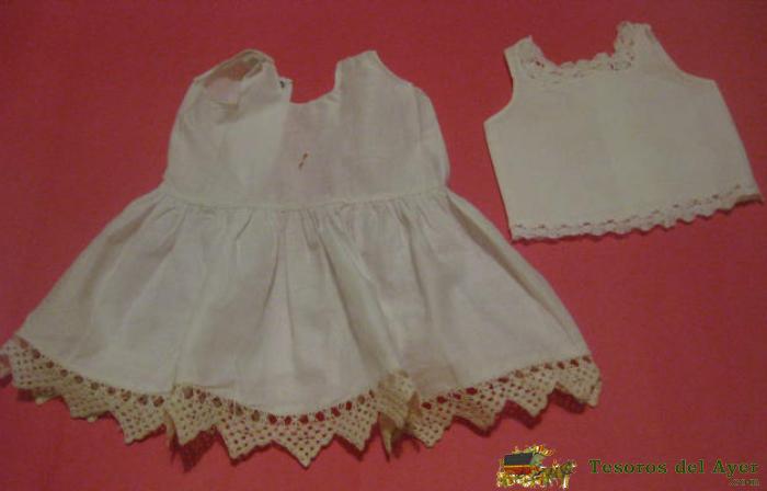 ENAGUA Y BRAGUITA DE LA ANTIGUA MUÑECA MARIQUITA PEREZ AÑOS 40, LLEVA EL BORDADO CLÁSUCO DE MP.