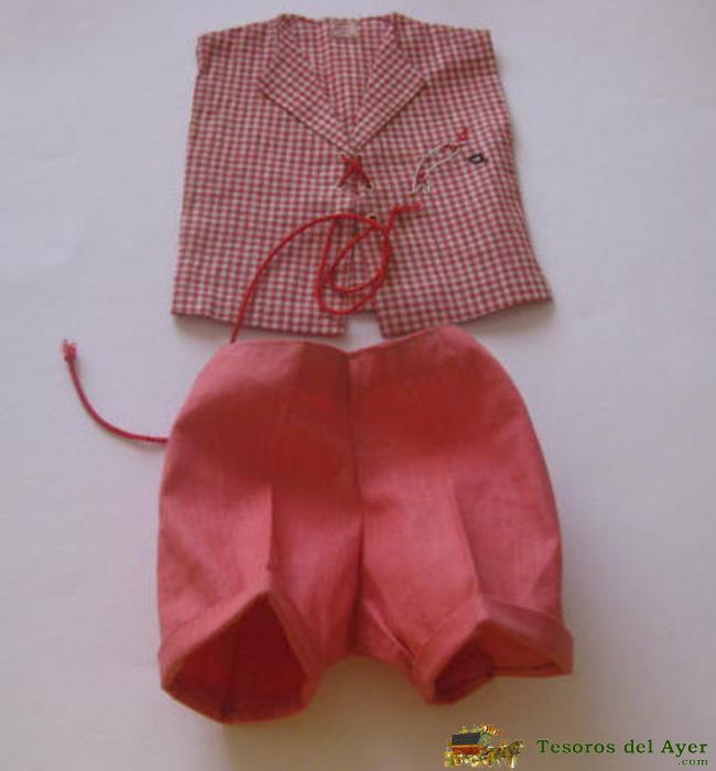 PANTALON CORTO DE PUNTO. LE SIRVE A JUANIN DE ACORTAR, Ó A OTRO MUÑECO ANTIGUO DE ESE TAMAÑO-VENIA EN EL BAÚL DE LA MUÑECA GISELA.CHALECO DE PAÑO, VENIA JUNTO A GISELA.