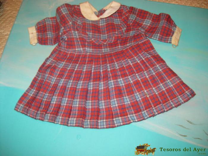 VESTIDO EN VILLELA CON ESTAMPADO ESCOCES ,ORIGINAL DE LA ANTIGUA MUÑECA CAYETANA DE LOS AÑOS 40.