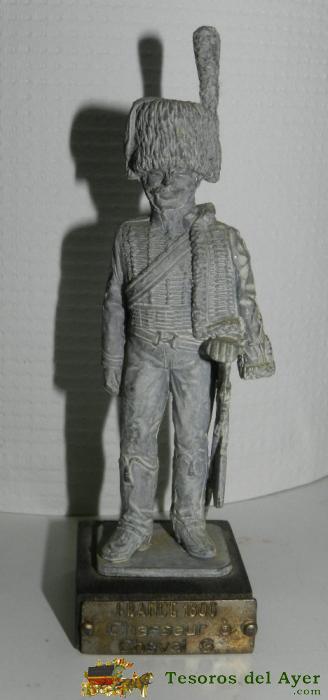 ANTIGUA FIGURA DE CHASSEUR A CHEVAL, FRANCE 1806 MILITAR, METALICO, PUEDE SER PLOMO, MIDE 13,5 CMS.