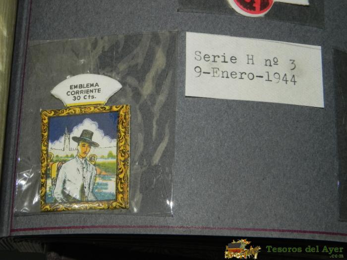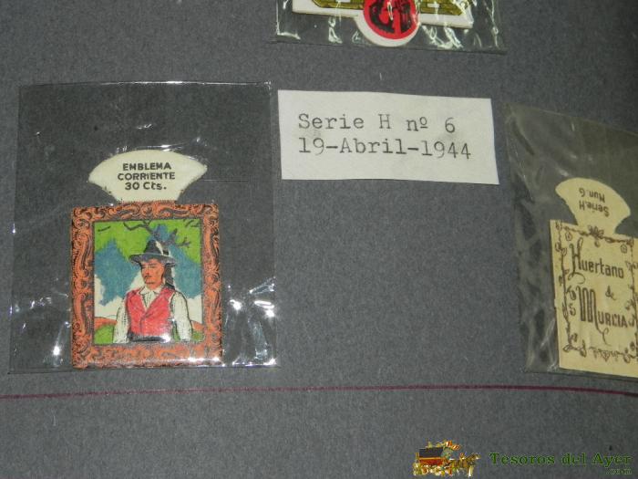 EMBLEMA DE AUXILIO SOCIAL, PRECIO 30 CTS, TAMAÑO 2,5 X 4 CMS, SERIE H, NUMERO 6, 19 ABRIL DE 1944