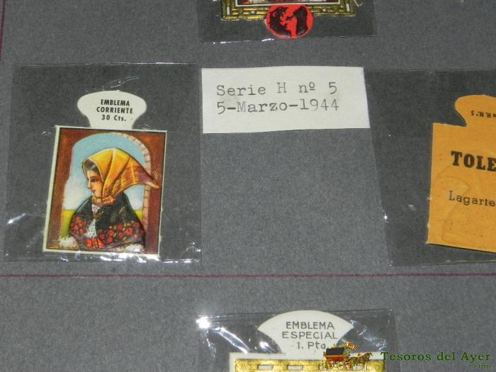 EMBLEMA DE AUXILIO SOCIAL, PRECIO 30 CTS, TAMAÑO 2,5 X 4 CMS, SERIE H, NUMERO 5, 5 MARZO DE 1944