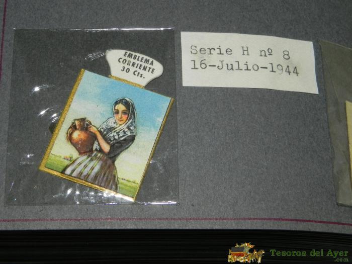 EMBLEMA DE AUXILIO SOCIAL, PRECIO 30 CTS, TAMAÑO 2,5 X 4 CMS, SERIE H, NUMERO 8, 16 JULIO DE 1944