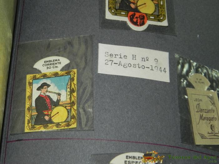 EMBLEMA DE AUXILIO SOCIAL, PRECIO 30 CTS, TAMAÑO 2,5 X 4 CMS, SERIE H, NUMERO 9, 27 AGOSTO DE 1944