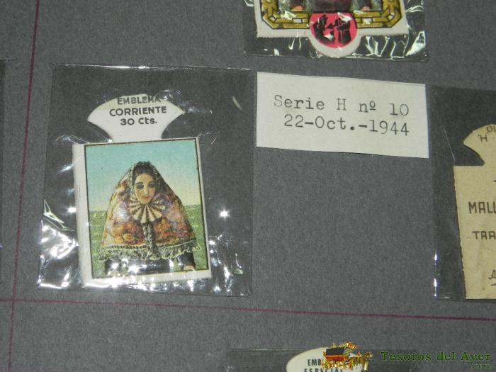 EMBLEMA DE AUXILIO SOCIAL, PRECIO 30 CTS, TAMAÑO 2,5 X 4 CMS, SERIE H, NUMERO 10, 22 OCTUBRE DE 1944