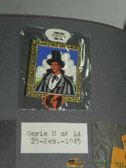 EMBLEMA DE AUXILIO SOCIAL, PRECIO 1 PESETA, TAMAÑO 3 X 5 CMS, SERIE H, NUMERO 14, 25 FEBRERO DE 1945, ESPECIAL