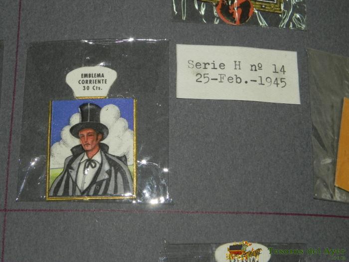 EMBLEMA DE AUXILIO SOCIAL, PRECIO 30 CTS, TAMAÑO 2,5 X 4 CMS, SERIE H, NUMERO 14, 25 FEBRERO DE 1945