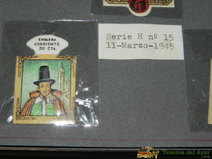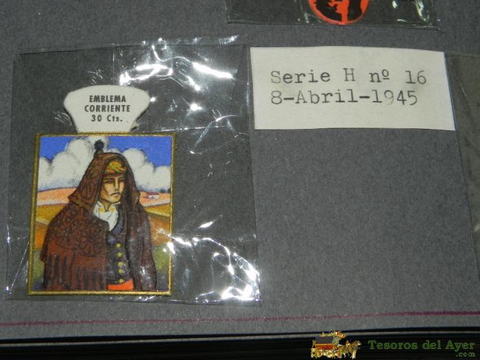 EMBLEMA DE AUXILIO SOCIAL, PRECIO 30 CTS, TAMAÑO 2,5 X 4 CMS, SERIE H, NUMERO 16, 8 ABRIL DE 1945