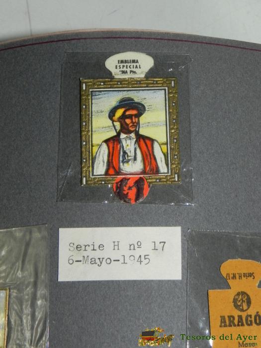 EMBLEMA DE AUXILIO SOCIAL, PRECIO 1 PESETA, TAMAÑO 3 X 5 CMS, SERIE H, NUMERO 17, 6 MAYO DE 1945, ESPECIAL
