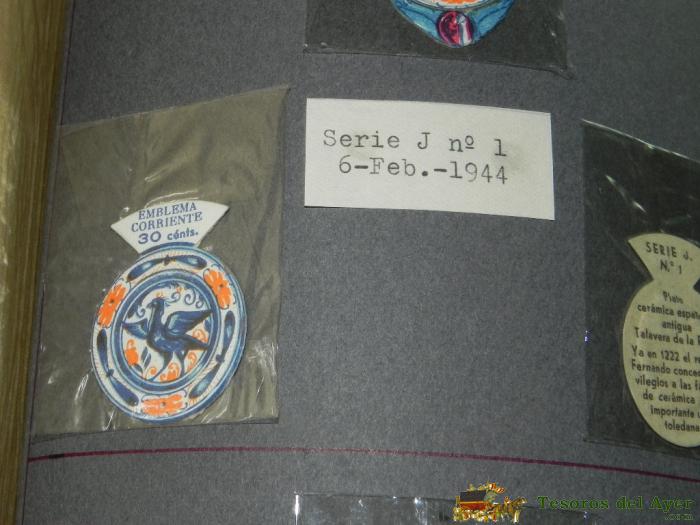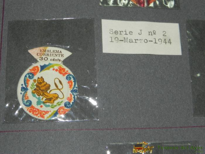 EMBLEMA DE AUXILIO SOCIAL, PRECIO 30 CTS, TAMAÑO 3 X 4 CMS, SERIE J, NUMERO 1, 6 FEBRERO DE 1944