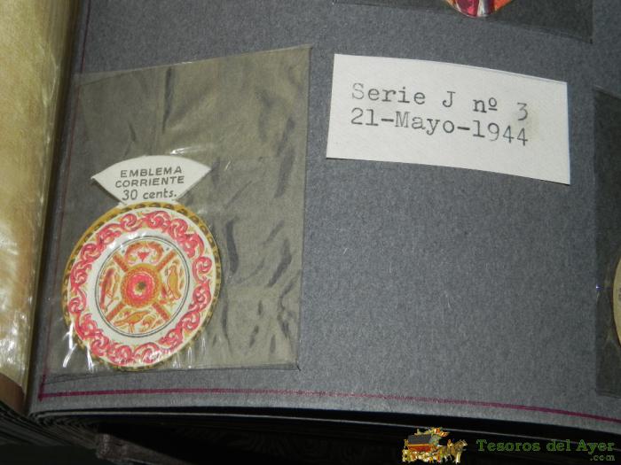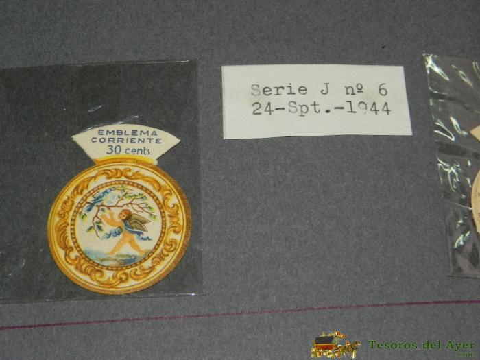 EMBLEMA DE AUXILIO SOCIAL, PRECIO 30 CTS, TAMAÑO 3 X 4 CMS, SERIE J, NUMERO 5, 24 SEPTIEMBRE DE 1944
