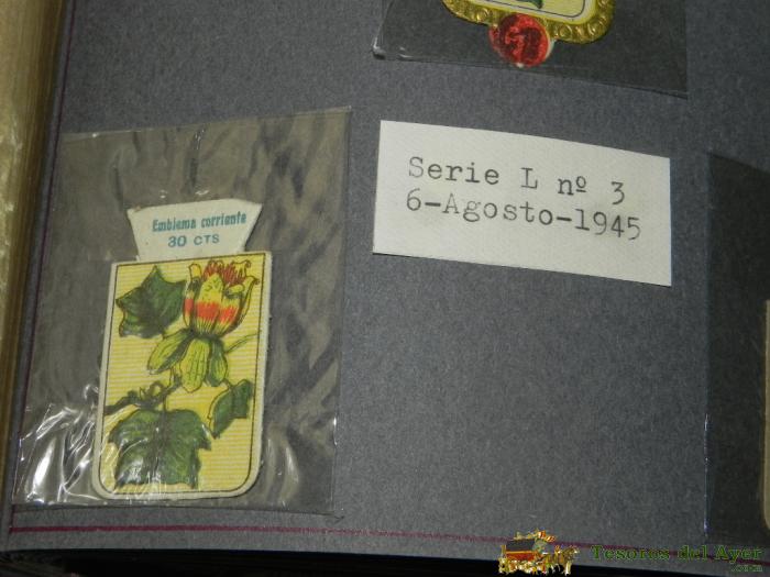 EMBLEMA DE AUXILIO SOCIAL, PRECIO 30 CTS, TAMAÑO 2,5 X 4,5 CMS, SERIE L, NUMERO 3, 6 AGOSTO DE 1945