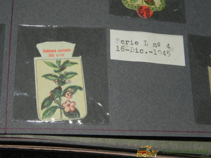 EMBLEMA DE AUXILIO SOCIAL, PRECIO 30 CTS, TAMAÑO 2,5 X 4,5 CMS, SERIE L, NUMERO 4, 16 DICIEMBRE DE 1945
