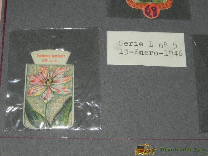 EMBLEMA DE AUXILIO SOCIAL, PRECIO 30 CTS, TAMAÑO 2,5 X 4,5 CMS, SERIE L, NUMERO 5, 13 ENERO DE 1946