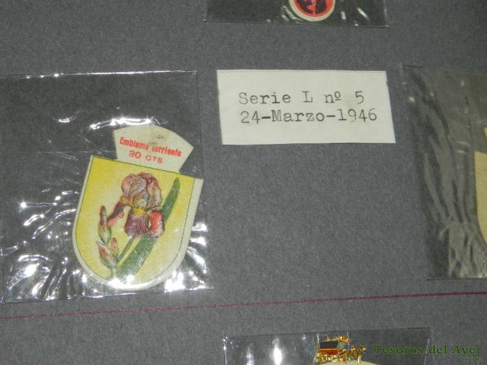 EMBLEMA DE AUXILIO SOCIAL, PRECIO 30 CTS, TAMAÑO 2,5 X 4,5 CMS, SERIE L, NUMERO 5, 24 MARZO DE 1946