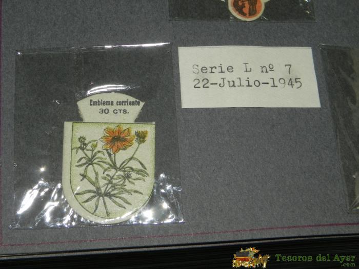 EMBLEMA DE AUXILIO SOCIAL, PRECIO 30 CTS, TAMAÑO 2,5 X 4,5 CMS, SERIE L, NUMERO 7, 22 JULIO DE 1945