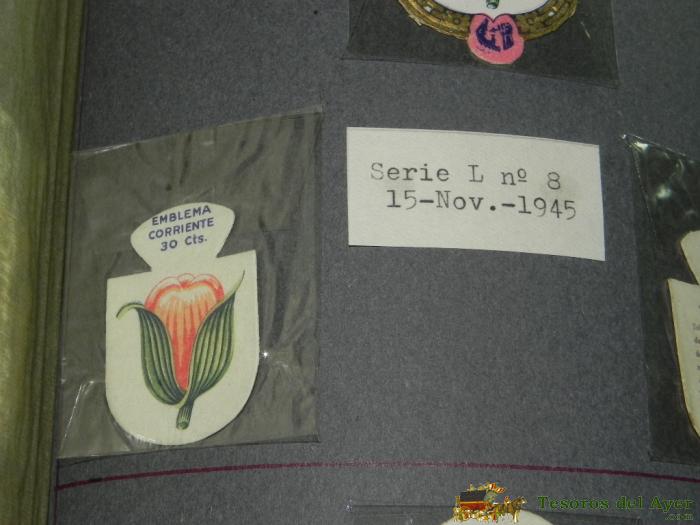 EMBLEMA DE AUXILIO SOCIAL, PRECIO 30 CTS, TAMAÑO 2,5 X 4,5 CMS, SERIE L, NUMERO 8, 15 NOVIEMBRE DE 1945