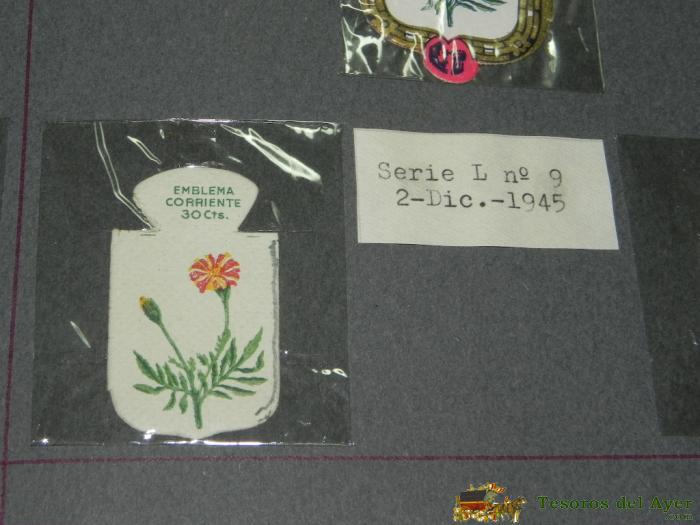 EMBLEMA DE AUXILIO SOCIAL, PRECIO 30 CTS, TAMAÑO 2,5 X 4,5 CMS, SERIE L, NUMERO 9, 2 DICIEMBRE DE 1945