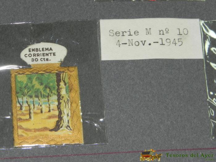 EMBLEMA DE AUXILIO SOCIAL, PRECIO 30 CTS, TAMAÑO 3 X 3,5 CMS, SERIE M, NUMERO 10, 4 NOVIEMBRE DE 1945