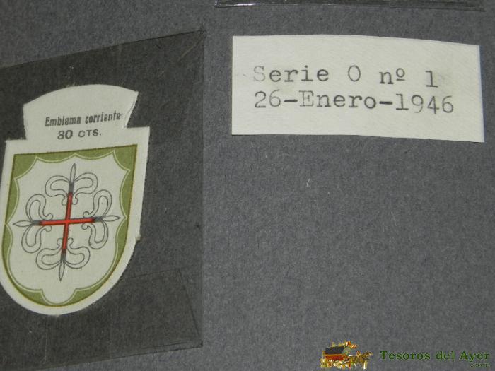 EMBLEMA DE AUXILIO SOCIAL, PRECIO 30 CTS, TAMAÑO 2,5 X 4 CMS, SERIE O, NUMERO 1, 26 ENERO DE 1946