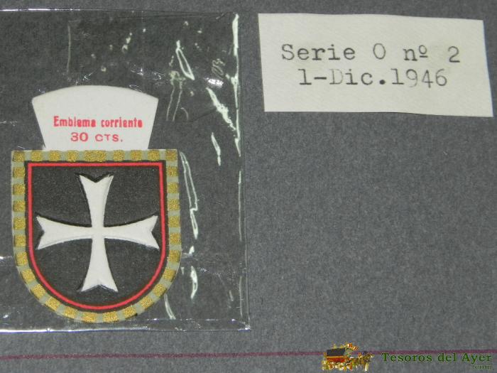 EMBLEMA DE AUXILIO SOCIAL, PRECIO 30 CTS, TAMAÑO 2,5 X 4 CMS, SERIE O, NUMERO 2, 1 DICIEMBRE DE 1946