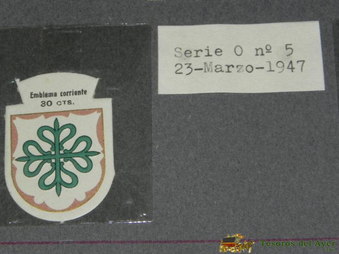 EMBLEMA DE AUXILIO SOCIAL, PRECIO 30 CTS, TAMAÑO 2,5 X 4,5 CMS, SERIE O, NUMERO 5, 23 MARZO DE 1947