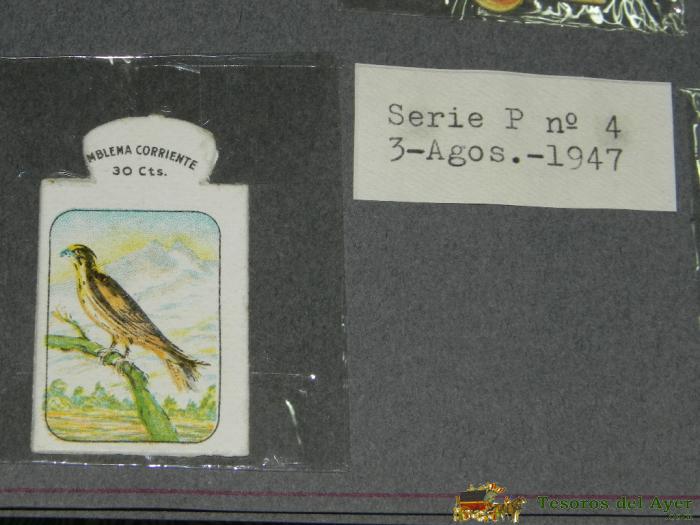 EMBLEMA DE AUXILIO SOCIAL, PRECIO 30 CTS, TAMAÑO 2 X 4 CMS, SERIE P, NUMERO 4, 3 AGOSTO DE 1947