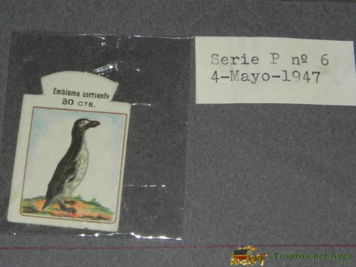 EMBLEMA DE AUXILIO SOCIAL, PRECIO 30 CTS, TAMAÑO 2 X 4 CMS, SERIE P, NUMERO 6, 4 MAYO DE 1947