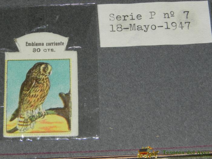 EMBLEMA DE AUXILIO SOCIAL, PRECIO 30 CTS, TAMAÑO 2 X 4 CMS, SERIE P, NUMERO 7, 18 MAYO DE 1947