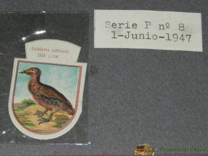 EMBLEMA DE AUXILIO SOCIAL, PRECIO 30 CTS, TAMAÑO 2 X 4 CMS, SERIE P, NUMERO 8, 1 JUNIO DE 1947