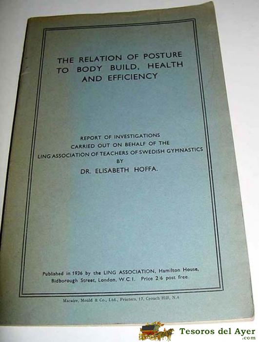 THE RELATION FO POSTURE TO BODY BUILD, HEALTH AND EFFICIENCY – DR. ELIZABETH - HOFFA – LING ASSOCIATION, LONDON 1936 – 104 PáG - MEDICINA DEPORTIVA - DEPORTE.