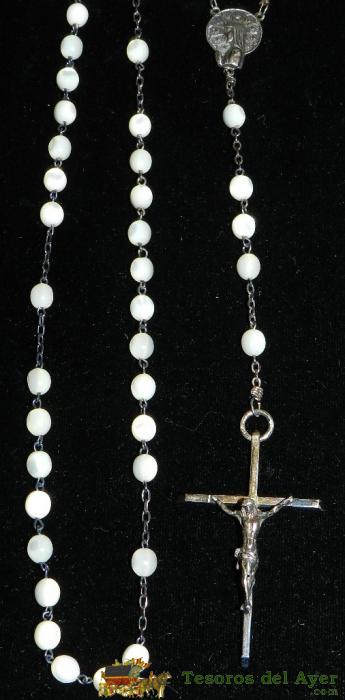 ANTIGUO ROSARIO DE PLATA Y NACAR, EXCEPCIONAL, MODERNISTA, FINALES DEL SIGLO XIX, MIDE 53 CMS. DE LONGITUD INCLUIDO EL CRUCIFIJO. PRECIOSO