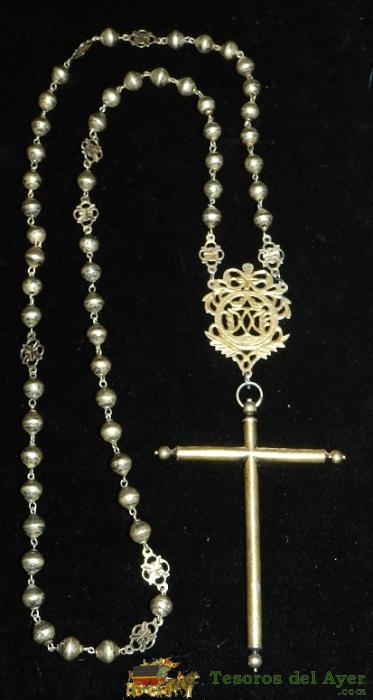 ANTIGUO ROSARIO DE PLATA, EXCEPCIONAL, DEL SIGLO XIX, MIDE 53 CMS. DE LONGITUD INCLUIDO EL CRUCIFIJO. PRECIOSO Y MUY DIFICIL DE ENCONTRAR.