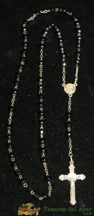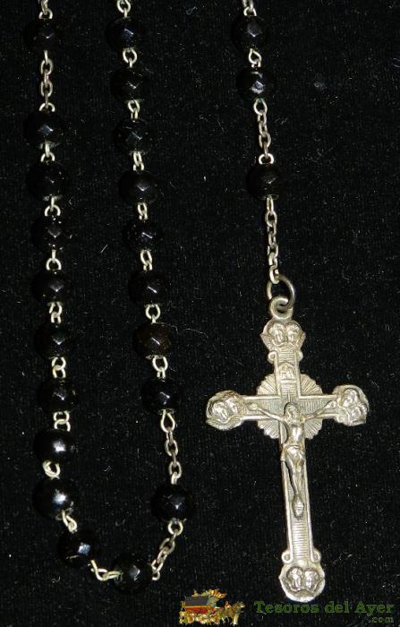 ANTIGUO ROSARIO DE AZABACHE Y PLATA, EXCEPCIONAL, DEL SIGLO XIX, MIDE 38,5 CMS. DE LONGITUD INCLUIDO EL CRUCIFIJO. PRECIOSO .