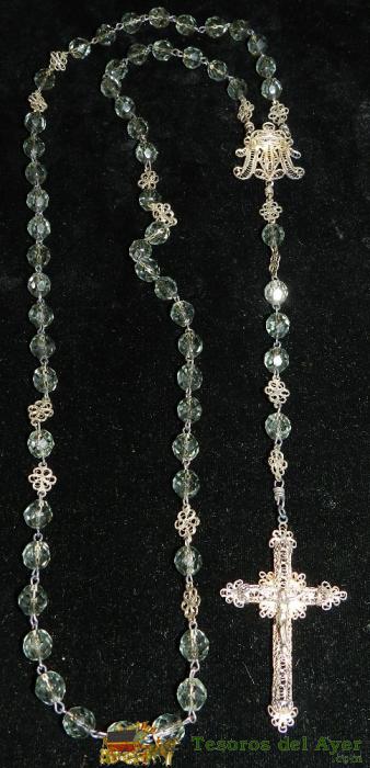 ANTIGUO ROSARIO DE PLATA Y CRISTAL DE ROCA, MIDE 60 CMS. DE LONGITUD INCLUIDO EL CRUCIFIJO, SIGLO XIX. EXCELENTE ESTADO.