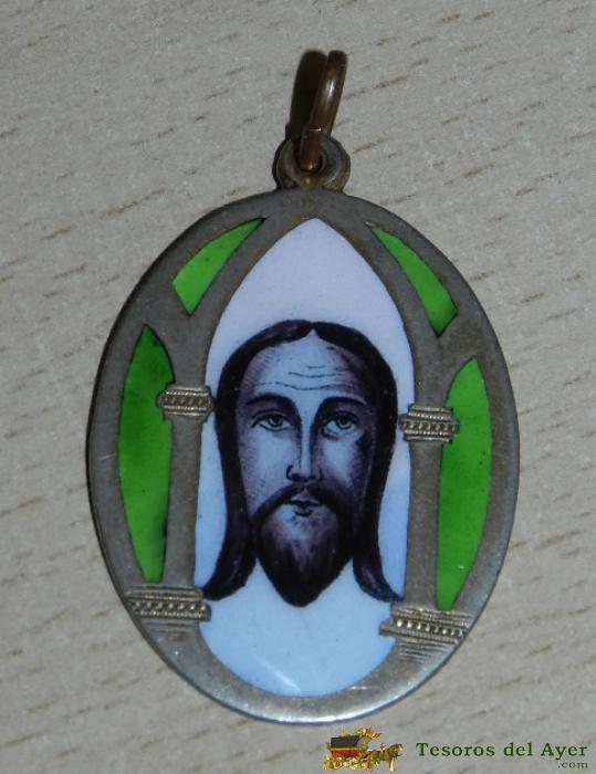ANTIGUA MEDALLA CON ESMALTE AL FUEGO SOBRE COBRE DE JESUCRISTO, MIDE 4 CMS. SIN CONTAR LA ARGOLLITA, PRECIOSA.