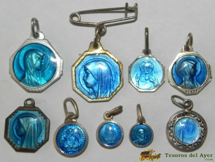 ANTIGUO LOTE DE 9 MEDALLAS RELIGIOSAS CON ESMALTE, TAL COMO SE VE EN LA FOTOGRAFIA PUESTA. EXCELENTE. ESTAMALTADO, ESMALTES.