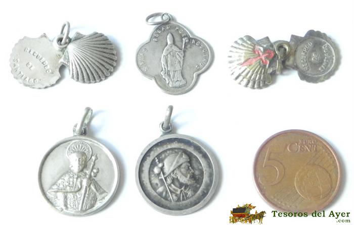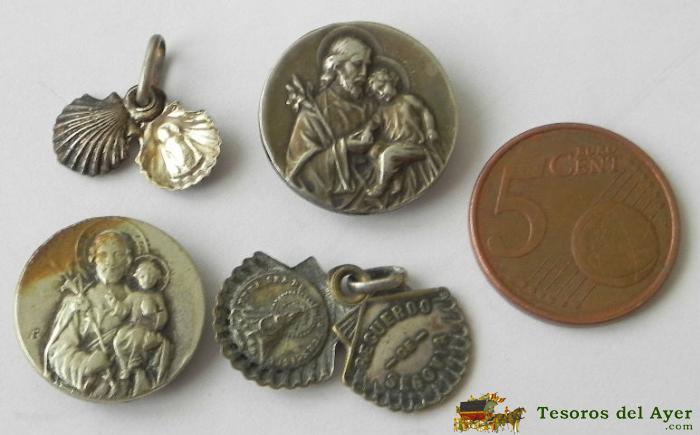 ANTIGUO LOTE DE 5 MEDALLAS RELIGIOSAS DE LAS QUE 3 SON DE PLATA, TAL COMO SE VE EN LA FOTOGRAFIA PUESTA.