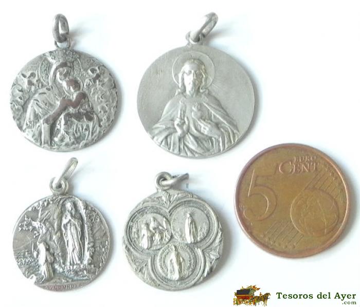 ANTIGUO LOTE DE 4 MEDALLAS RELIGIOSAS DE LAS QUE ALGUNAS SON DE PLATA, TAL COMO SE VE EN LA FOTOGRAFIA PUESTA.
